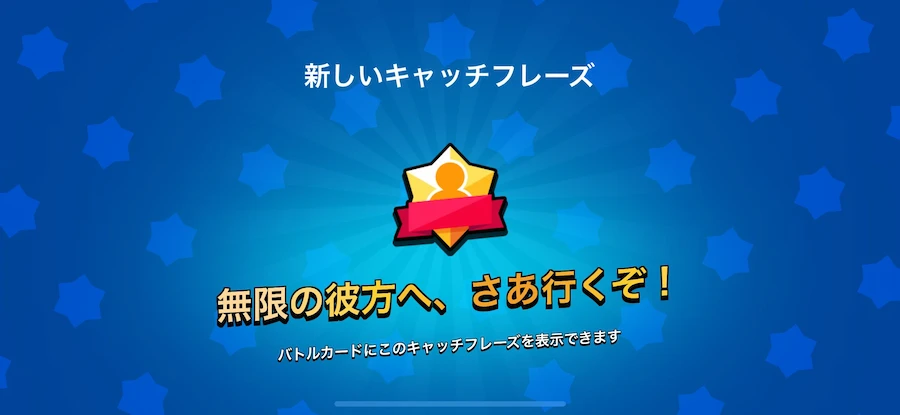当時のブロスタに1600円課金するプレイヤーが少なかったのでいまではレアであり入手不可なキャッチフレーズとなっています。